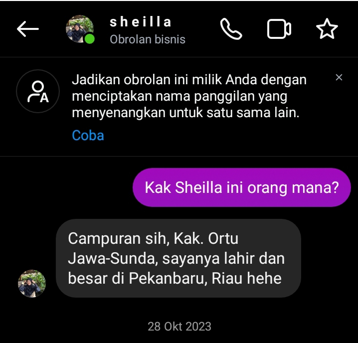 Berikut ss-an saat DM-an dengan Sheilla pas awal-awal kenal: